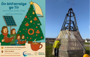 Beidh an chéad chrann Nollaig muirí inbhuanaithe sa tír, déanta go hiomlán as ábhair athúsáidte uisceshaothraithe agus muirí, á lasadh i bPáirc na Mara, Cill Chiaráin, ar Déardaoin, an 11 Nollaig.