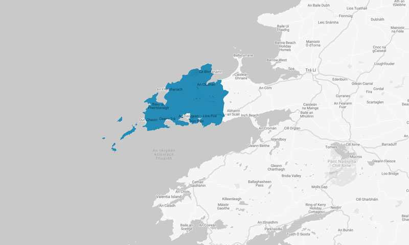 Ciarraí: Daingean Uí Chúis (sa Ghaeltacht), Trá Lí agus Cathair Saidhbhín