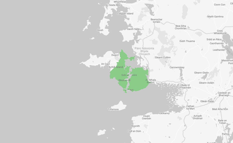 Maigh Eo: Béal an Mhuirthead (sa Ghaeltacht), Baile an Róba agus Caisleán an Bharraigh